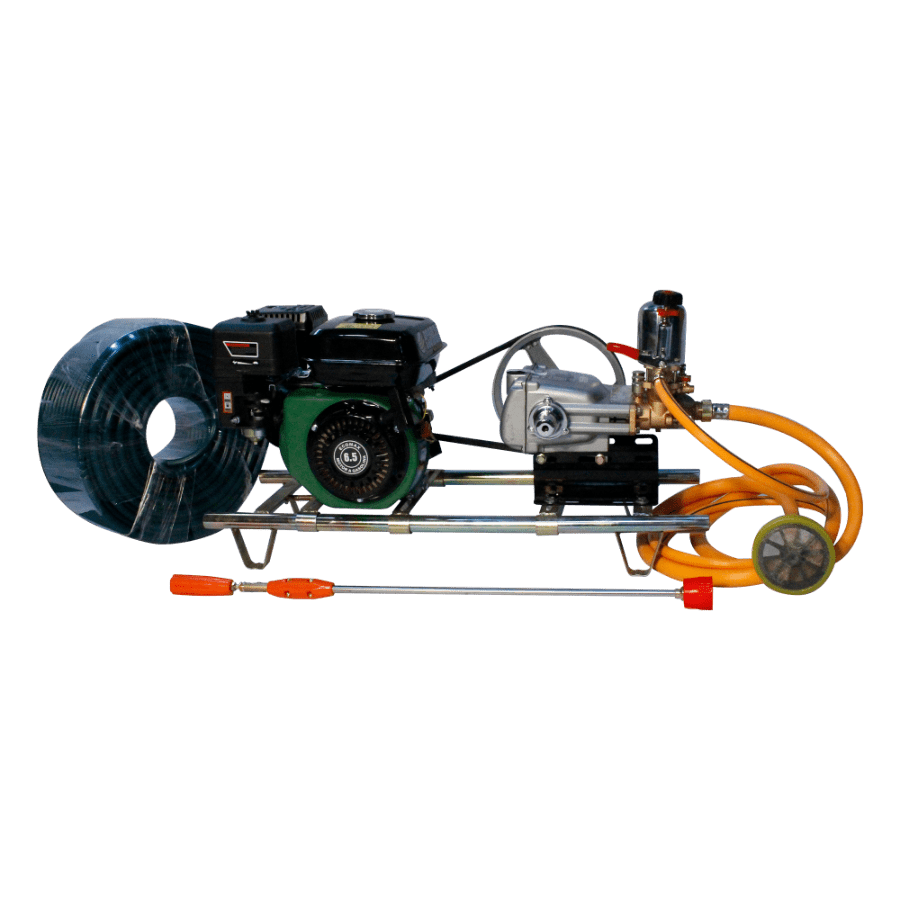 Motor gasolina ECOMAX que proporciona una fuente confiable y económica. Fumigadora de embolo, en Acero, con capacidad de aspersión hasta de 500psi, y 28lpm.