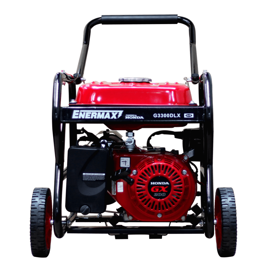 Generador a Gasolina 3kVA Enermax G3300DLX| Los generadores gasolina ENERMAX, ensamblados con motor HONDA además de tener el respaldo de la marca líder mundial en productos de potencia, permiten atender las necesidades de generación de energía con altos estándares de eficiencia y confiabilidad y gracias a su sistema AVR (regulación electrónica de voltaje), aportan un excelente desempeño con cargas variables; su tablero incluye breaker de protección, salidas de doble voltaje con selector en las versiones monofásicas y tomas y enchufes machos entre sus accesorios; cuentan con KIT de ruedas que permiten un fácil desplazamiento.