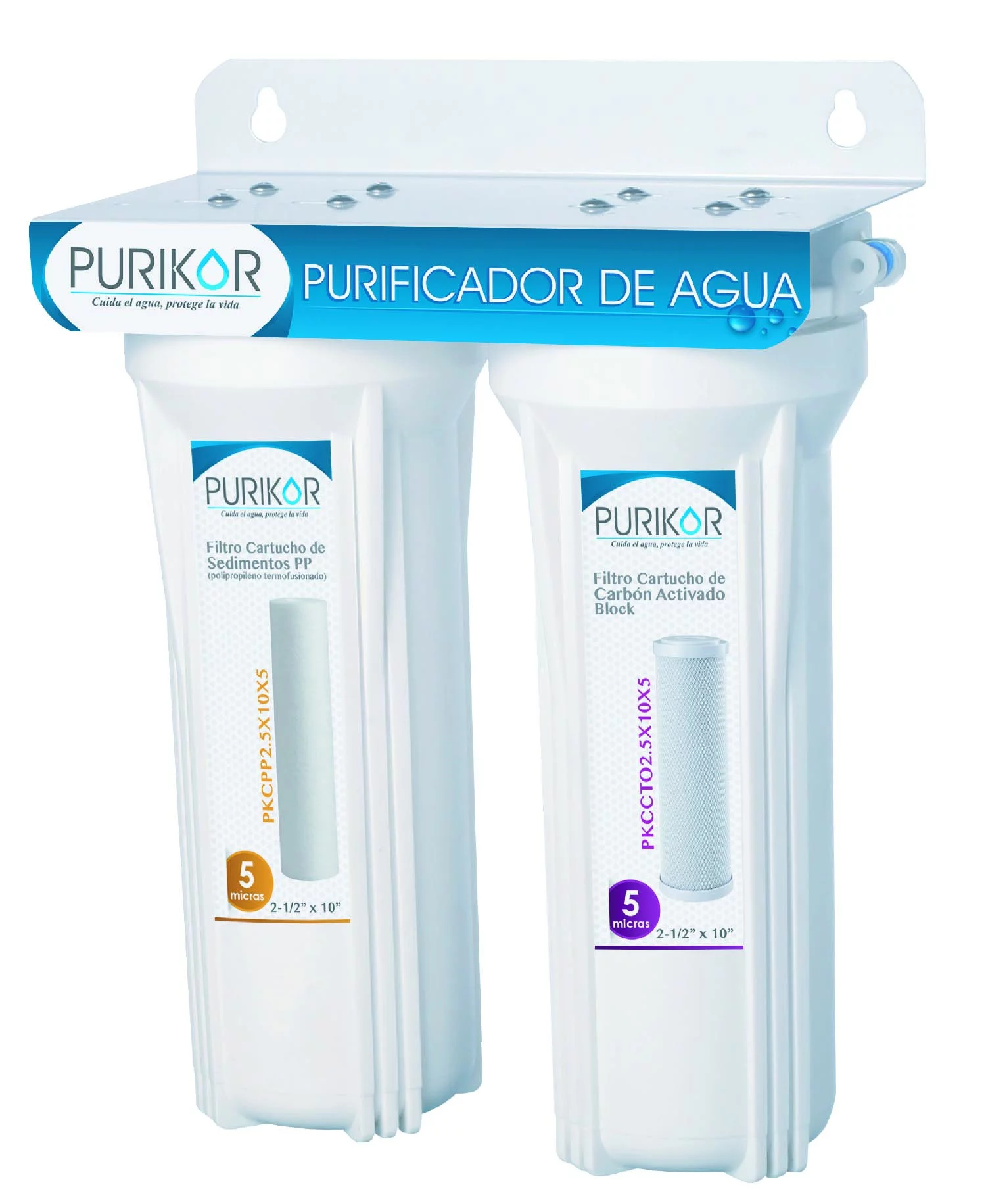 SISTEMA DE FILTRACIÓN BÁSICA POU MARCA PURIKOR DE 2 ETAPAS Y FILTRACIÓN DE 5 MICRAS PARA FLUJO DE 0.5 GPM